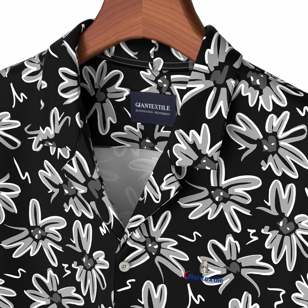 Black Print 100% Cotton Hawaiian Collar Men’s Sports Shirt with Aloha Shirt Camisa de camisa