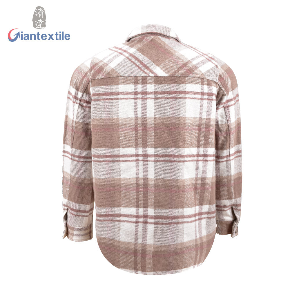 Giantextile Good Look Flannel Overshirts Comfortable Men’s Shirt Brown Check Long Sleeve High Quality Shirt For Men GTCW108399G1
