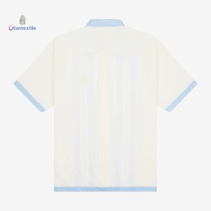Giantextile Summer Wear Men’s Short-Sleeve Striped Shirt – Light Blue and Beige Colorblock with Vertical Stripes GTCW201396G1