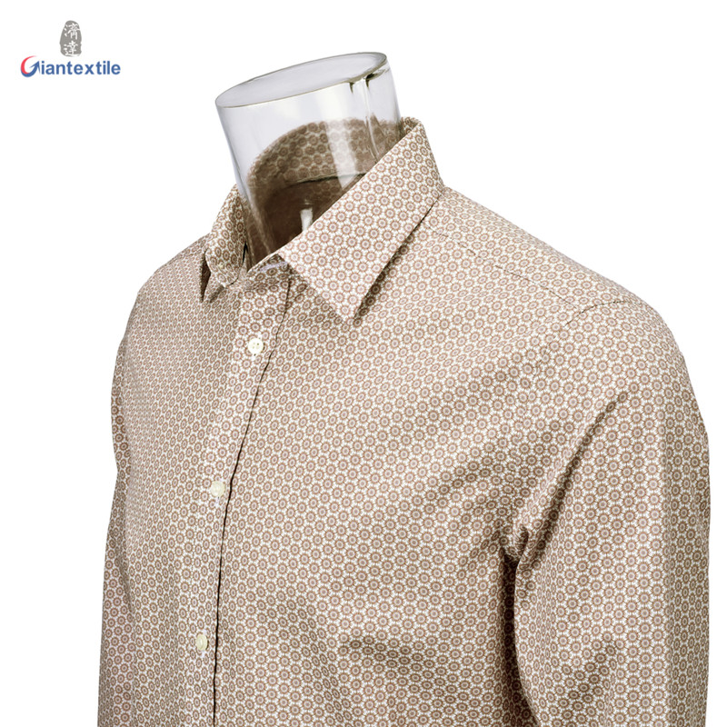 Men's 100% BCI Cotton Print Long Sleeve Shirt Mini Geometric Digital Print Shirt For Men