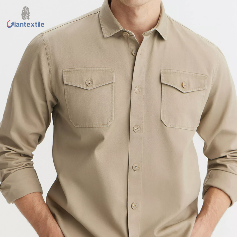 | Item Name: | Men’s Khaki Twill Shirt with Flap Pockets-100% Cotton Durable and Stylish by Giantextile GTCW202076G1 | |||