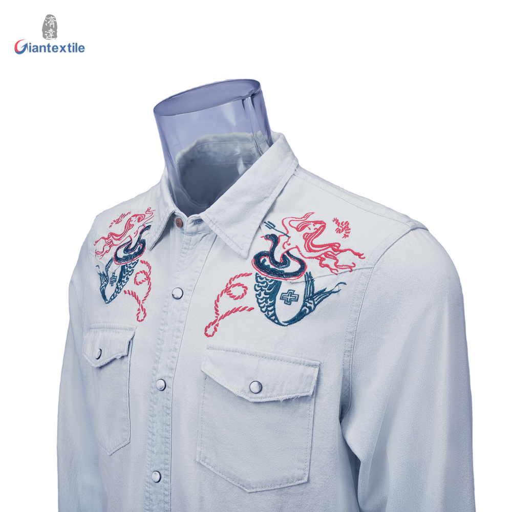 Men's Light Long Sleeve Solid Denim Shirt Embroidered Denim For Men