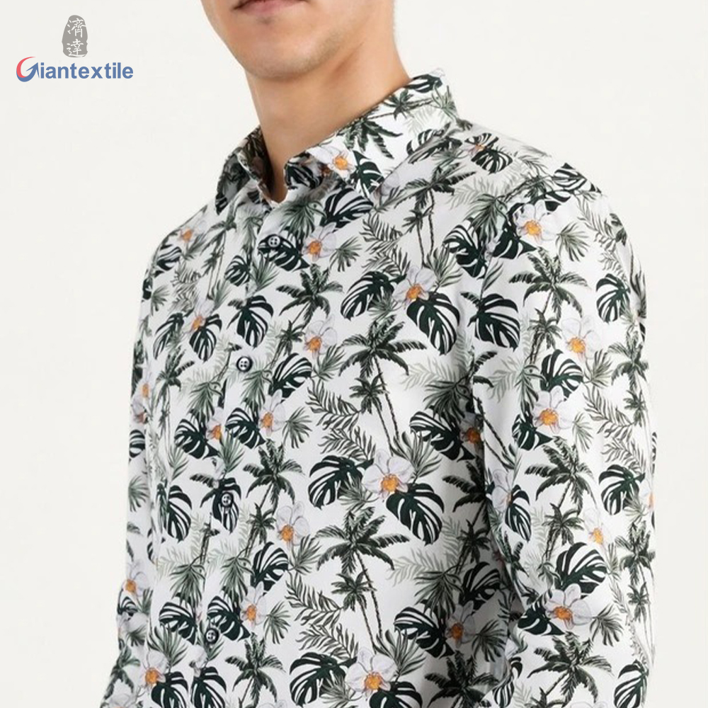 Modern Design Bright-coloured Men’s Shirt Spandex Cotton Casual Poplin Shirt Tree Print Long Sleeve Shirt For Men GTCW108103G1