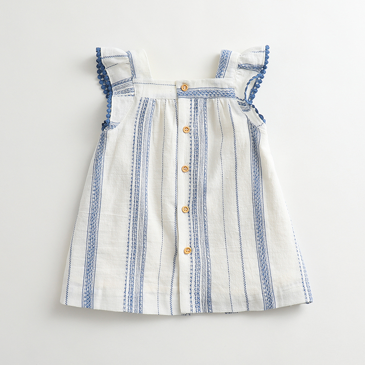 New Summer Dress Girls Yarn-dyed Jacquard Stripe Dress Baby Vest Skirt
