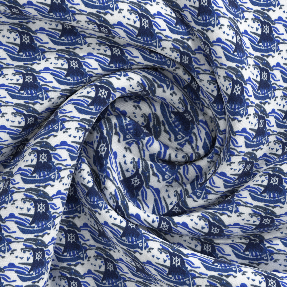 Well-Finished Naturally Breathable Sea Boat Print Hawaii Men’s Shirt with Light Cotton Aloha Shirt